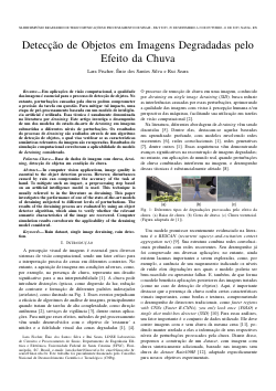 Em aplicações de visão computacional, a qualidade das imagens é essencial para o processo de detecção de objetos. No entanto, perturbações causadas pela chuva podem comprometer a precisão da tarefa em questão. Para mitigar tal impacto, uma etapa de pré-processamento baseada em um modelo de inteligência artificial é utilizada. Essa técnica é usualmente denominada na literatura por deraining. Este artigo investiga o desempenho de um dos modelos do estado-da-arte de deraining em imagens submetidas a diferentes níveis de perturbações. Os resultados do processo de deraining são avaliados através de um algoritmo de detecção de objetos, o qual visa verificar se as características semânticas relevantes da imagem são recuperadas. Resultados de simulação computacional corroboram a aplicabilidade do modelo de deraining considerado.Download