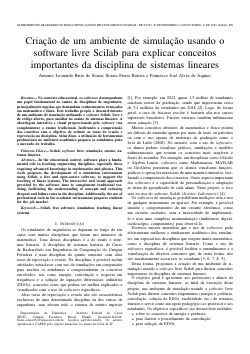 No contexto educacional, os softwares desempenham um papel fundamental no ensino de disciplinas de engenharia, principalmente aquelas que demandam conhecimentos avançados em matemática e física. Este trabalho propõe o desenvolvimento de um ambiente de simulação utilizando o software Scilab, livre e de código aberto, para auxiliar no ensino de sistemas lineares. A abordagem interativa e visual proporcionada pelo software visa complementar o ensino tradicional, facilitando a compreensão dos conceitos com o objetivo de reduzir as taxas de evasão e reprovação na disciplina. Além disso, a utilização de ferramentas profissionais no ambiente acadêmico prepara os estudantes para o mercado de trabalho.Download